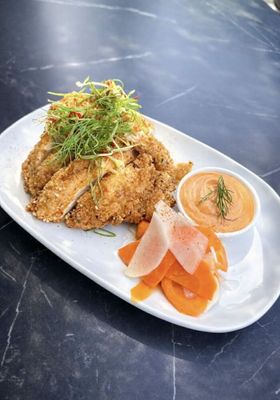 Crispy Fatboy Chicken with pickled vegetables and chili mayonnaise