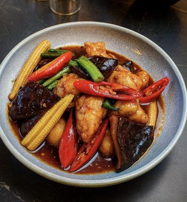 Try Fei Jai! We focus on Cantonese cuisine and have a variety of shared dishes, highlighted by our popular items such as Kung Pao Chicken and dumplings.